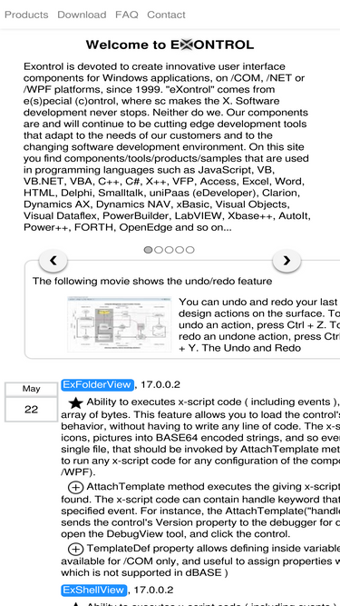 93%exontrol is devoted to create innovative user interface components for windows applications, on /com, /net or /wpf platforms, since 1999. on this site you find components/tools/products/samples that are used in programming languages such as javascript, vb, vb.net, vba, c++, c#, x++, vfp, access, excel, word, html, delphi, smalltalk, unipaas (edeveloper), clarion, dynamics ax, dynamics nav, xbasic, visual objects, visual dataflex, powerbuilder, labview, xbase++, autoit, power++, forth, and so on...