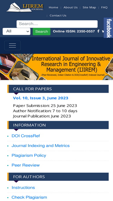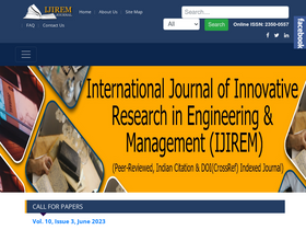 57%international journal of innovative research in engineering and management (ijirem) is a referred, online, open access, peer reviewed, doi indexed and high impact journal. it is publishing six issues per year since 2014. ijirem is continuously publishing original and best qualityresearch articles. we also publish international and national conference papers.ijirem is an indian citation index journal since october 2021