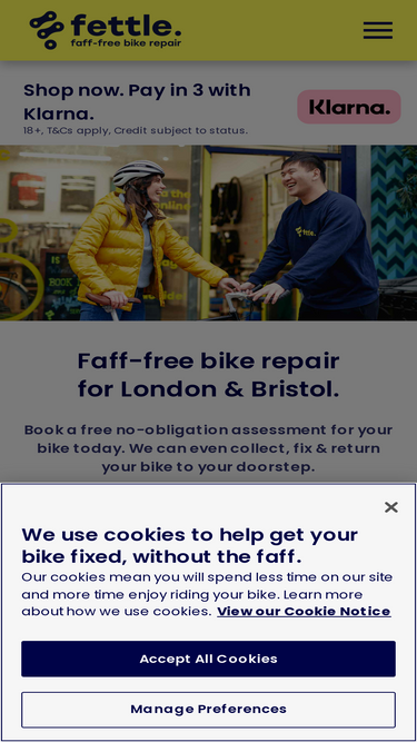 96%Fettle. The home of faff-free bike repair. Covering 8 cities across the UK, fettle puts the ‘service' back into bike servicing by providing same day repairs, upfront quote, pick up & delivery giving you the most convenient way of getting your bike back on the road.