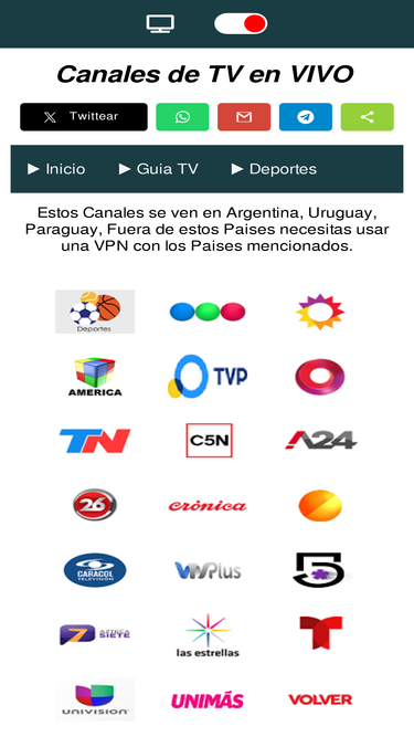 98%en telefullenvivo podras ver canales en vivo de argentina, españa, mexico entre otros: noticias, cine, infantiles, gran hermano, deportivos, documentales y adultos. como telefe, el trece, america, star channel, hbo, cinemax, discovery channel, discovery turbo, history, venus, playboy, telecinco, syfy, espn, fox sports, tnt sports, dazn, mtv y muchos mas..