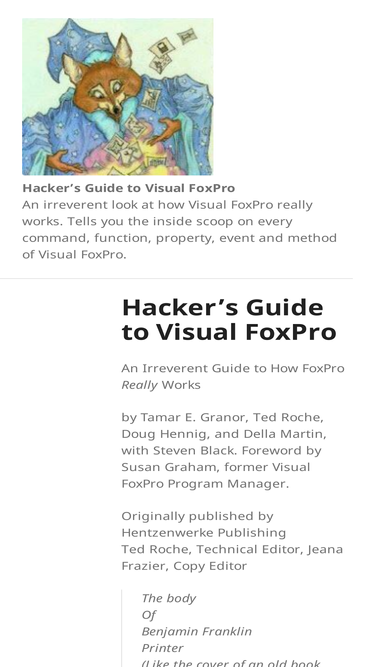 An irreverent look at how Visual FoxPro really works. Tells you the inside scoop on every command, function, property, event and method of Visual FoxPro.