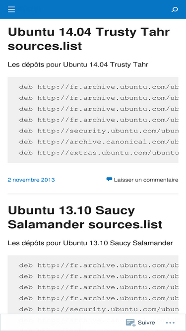 83%Les dépôts pour Ubuntu 13.10 Saucy Salamander deb saucy main restricted universe multiverse deb saucy-updates main restricted universe multiverse deb saucy-backports main restricted universe multiv…