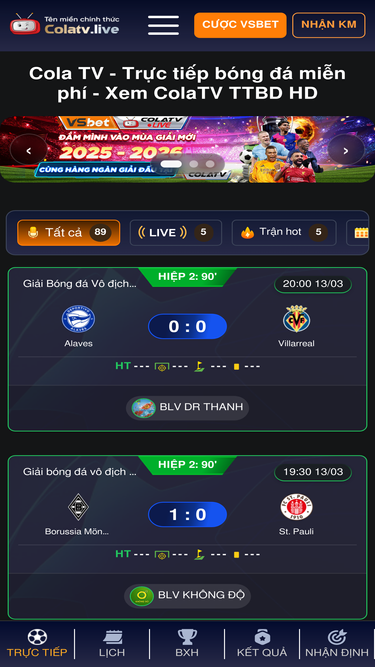 ColaTV phát trực tiếp bóng đá chất lượng cao, không giật lag. Xem bóng đá trực tuyến miễn phí tại Cola TV cùng đội ngũ BLV chuyên môn cao.