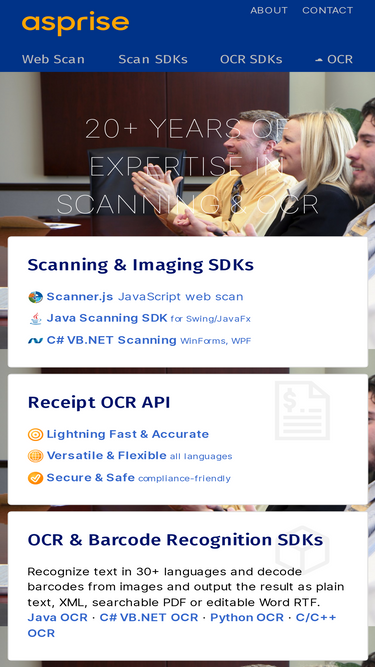 82%asprise offers web scan for saleforce and gmail, scanner.js, document scanning and ocr barcode recognition sdk libraries for java, c# vb.net and javascript and receipt ocr/invocie ocr apis.