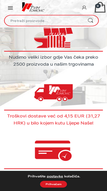 80%Sve za opremanje doma na jednom mjestu. Najpovoljnije cijene i bogata ponuda kupaonske opreme, grijanja, elektromaterijala, kvaka i okova, vijčane robe uz dostavu na području cijele Hrvatske