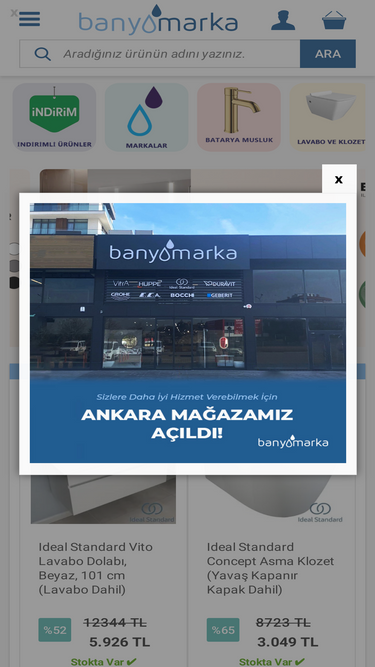 100%Banyomarka, banyonun tüm ünlü markalarının Lavabo, Klozet, Duş Teknesi, Batarya, Musluk, Seramik, Fayans gibi ürünlerini satın alabileceğiniz bir e-ticaret platformudur.