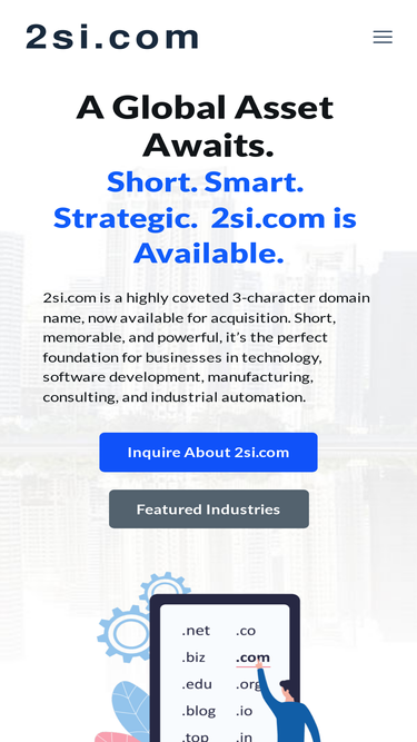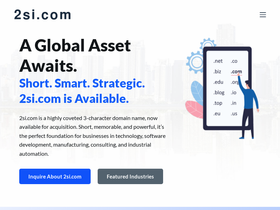 98%Premium 3-character domain name for sale. Perfect for technology, manufacturing, consulting, and business intelligence industries. 2si.com