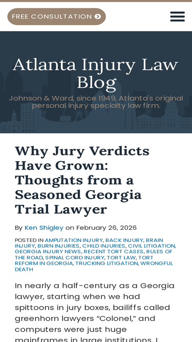 Your update on injury law in Atlanta. Published by Ken Shigley of Johnson & Ward, Atlanta's original personal injury specialty law firm.