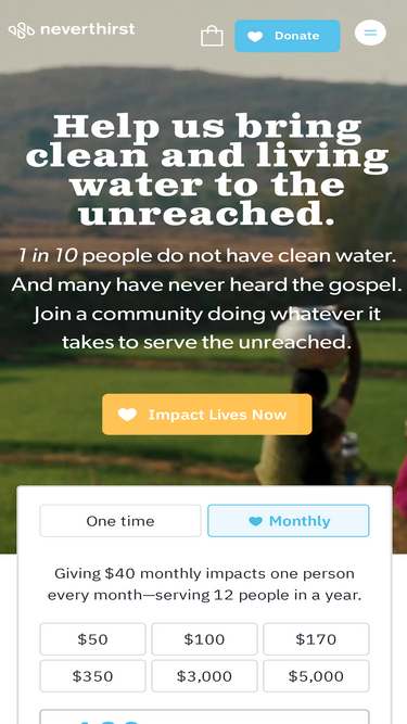 92%1 in 10 people do not have clean water. And many have never heard the gospel. This year, you can meet two of the world’s greatest needs – clean water and the hope of Jesus. You can make an impact before the year ends.