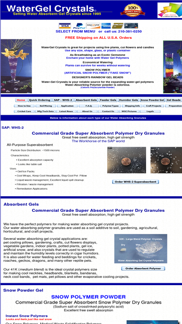 85%water gel crystals is a water absorbing crystals polymer that expands 400 times its original size! reduces irrigation costs, plant watering and plant stress. ideal for craft projects. our rainbow gel beads are colorfast. polymer powders are used for medical waste solidification, blood absorption, spill control, fake ice, fake snow, perfect bedding for crickets, roaches and reptiles and numerous miscellaneous craft and science projects.