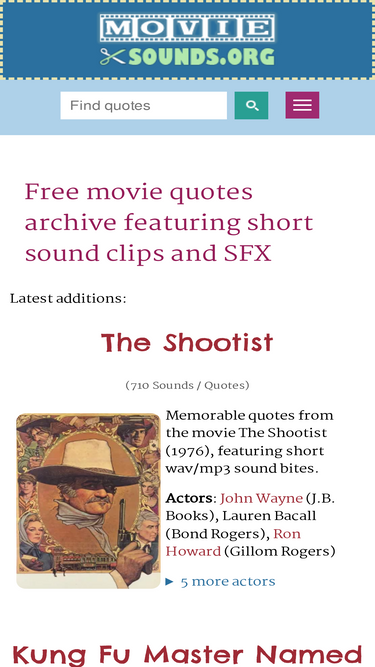 82%free online archive of film quotes featuring short sound clips. find movie lines in our movie quotes library which contains short audio samples in wav, mp3 format.