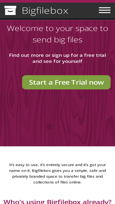 32%the best way to send and share big files. send large files with mailbigfile. upload up to 4gb per file. we transfer your files for free!