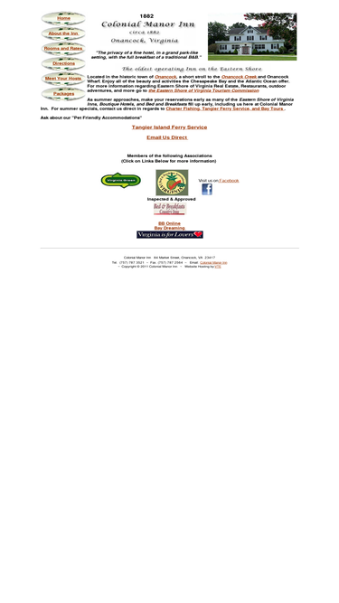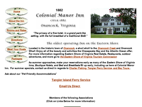 87%historic colonial manor inn offers warmth and hospitality to all who visit virginia's eastern shore, located in the waterfront community of onancock, virginia with easy access to the chesapeake bay.