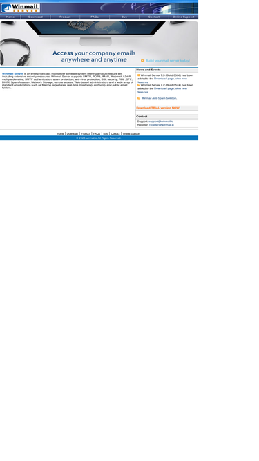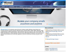 55%winmail server is an enterprise class mail server software system offering a robust feature set, including extensive security measures. winmail server supports smtp, pop3, imap, webmail, ldap, multiple domains, smtp authentication, spam protection, anti-virus protection, ssl security, rbl ,spf, dkim, spamassassin, network storage, remote access, web-based administration, and a wide array of standard email options such as filtering, signatures, real-time monitoring, archiving, and public email folders.