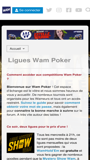 Bienvenue sur Wam Poker ! Cet espace d’échange est le vôtre et nous sommes heureux de vous y accueillir. De nombreux tournois sont organisés pour les Wameurs et tous ont un accès restreint.