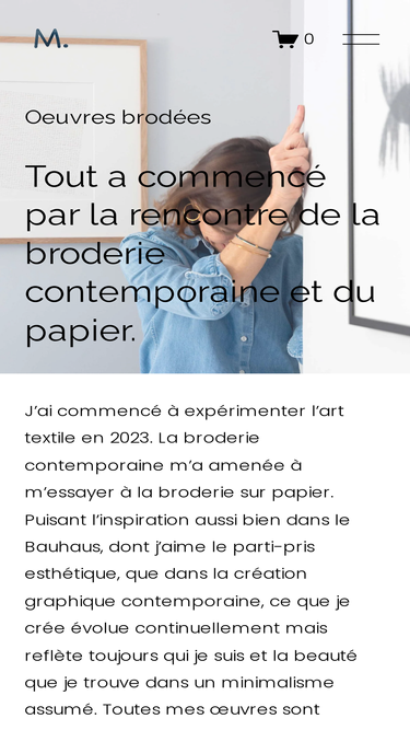 62%M. Artiste textile. Œuvres brodées : la rencontre de la broderie contemporaine et du papier. Tableaux uniques réalisés à la main par Mathilde le Rouzic