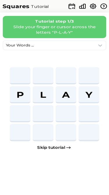 Play the Squares game! Connect letters in a grid to create words. A new puzzle is available every day!