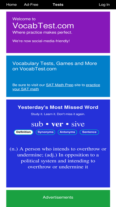 vocabulary word test and practice for the sat, act and more! free vocabulary tests and free vocabulary games for teachers and students.