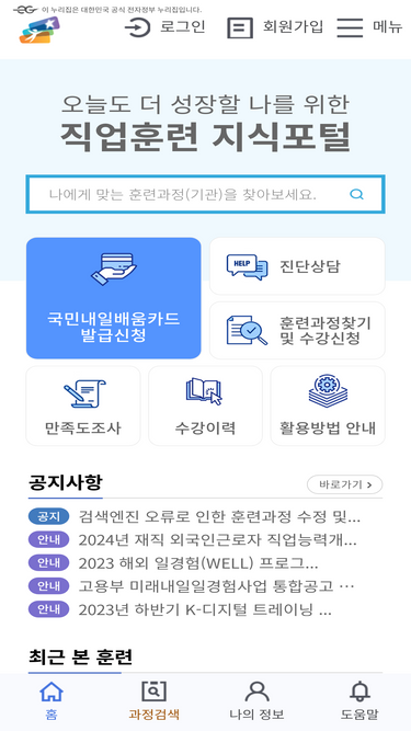 71%내일배움카드제, 근로자직무능력향상훈련, 기업체 지원훈련, 일학습병행, 전국 훈련기관.