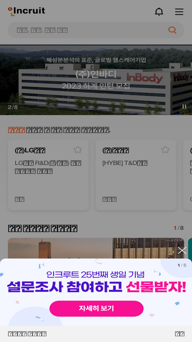 84%대기업 실시간 공채 소식부터 핫한 스타트업의 기업 리뷰, 연봉 정보 및 면접 후기까지 - 성공적인 커리어를 위한 모든것을 지금 '잡코리아'에서 확인하세요!