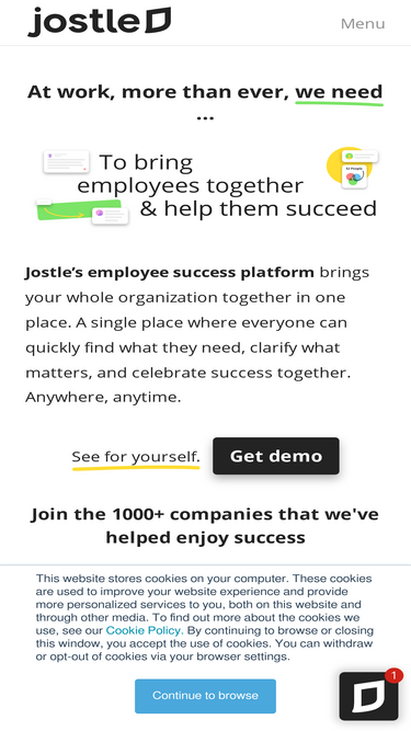 85%Explore Jostle’s employee success platform with all enterprise features and options unlocked for 30 days. Invite your colleagues to see it in action!