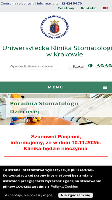 58%Zgodnie z art. 13 ust. 1 i ust. 2 Ogólnego rozporządzenia o ochronie danych osobowych z dnia 27 kwietnia 2016 r. Uniwersytecka Klinika Stomatologiczna z siedzibą na ul. Montelupich 4, 31-155 Kraków, informuje o treści stosowanych klauzul informacyjnych. Klauzula informacyjna dla podmiotów przystępujących do postępowania o udzielenie zamówienia publicznego Klauzula informacyjna dotycząca podmiotów, których dane […]