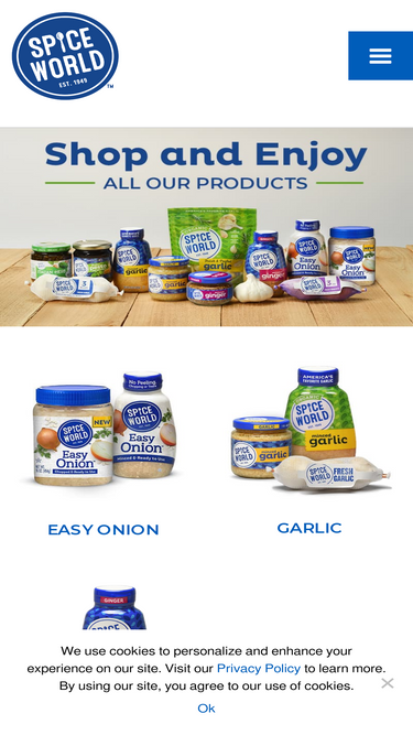 100%Spice World offers a full line of products from fresh garlic, minced garlic, and squeeze garlic as well as fresh ginger and shallots.