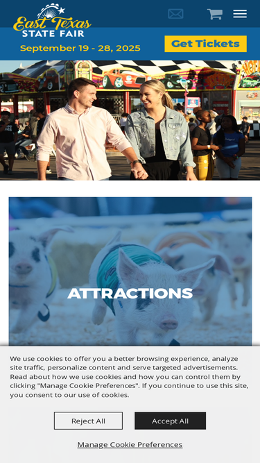 96%the east texas state fair offers fun, food, music & moos! located in tyler, tx at the east texas state fairgrounds enjoy carnival rides, free concerts, livestock show, creative arts competition, commercial vendors, live shows, and of course food!
