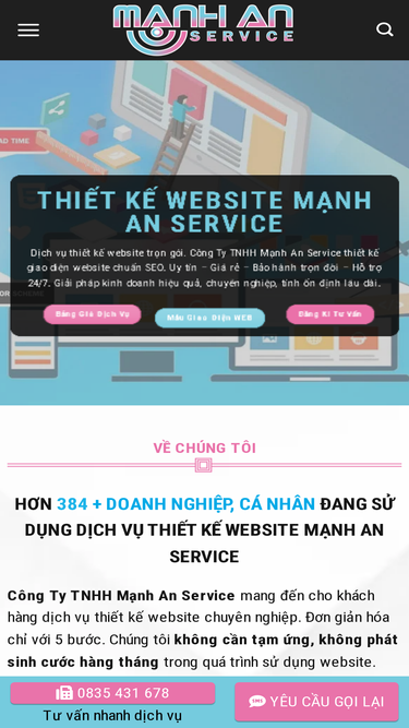88%Báo giá dịch vụ thiết kế website trọn gói do Mạnh An Service cung cấp. Cước phí trọn gói, cam kết không phát sinh thêm.