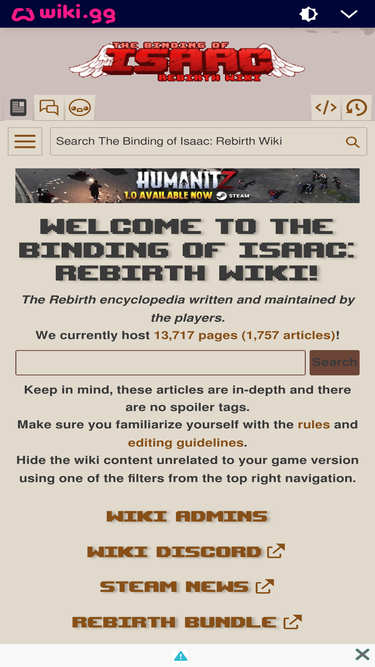 79%The #1 Wiki source of information for The Binding of Isaac: Rebirth, Afterbirth, Afterbirth+, Repentance, and Repentance+, the randomly generated action RPG shooter with heavy roguelike elements. Check out the guides, characters, summaries and more!