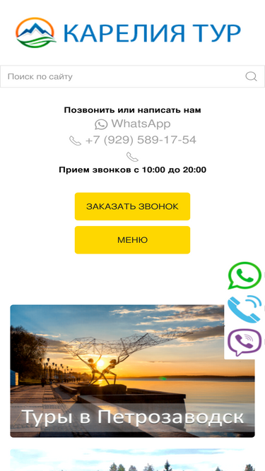 59%Большой выбор туров по Карелии, Выборгу, Петрозаводску, Великому Новгороду и другим живописным местам и достопримечательностям России и Ленинградской области Автобусные и водные экскурсионные туры по низким ценам Цены и список туров