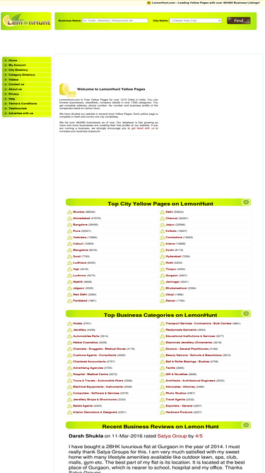 57%lemonhunt yellow pages contains over 10,00,000 business listings from all over india. top yellow pages / classifieds / business directory are mumbai, delhi, ahmedabad, jaipur, chennai, bangalore, kolkata, pune, surat, vadodara, coimbatore, etc.