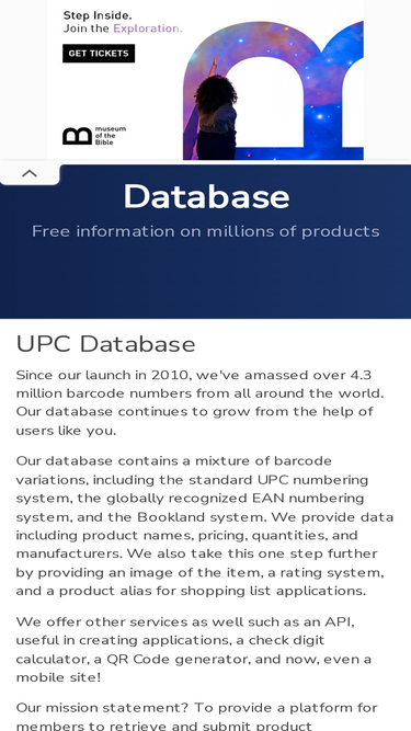 the upc database is a free service dedicated to collect and provide information on a wide variety of upc and ean barcodes.