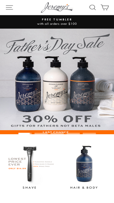 85%Harry’s and the Daily Wire had a deal. But after we said that boys are boys and girls are girls, they publicly condemned our views. Jeremy's Razors is the woke-free alternative for men's care. Mens razors, Shampoo, Body wash, bar soap, aluminum-free deodorant, and so much more.