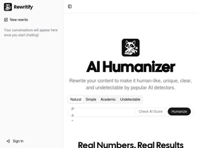 aihumanize.io, zerogpt.plus benzeri en popüler 4. site. rewritify.com ise beşinci sırada.aihumanize.io ve rewritify.com, Şubat 2026 için sırasıyla %competitor_4_visits% ve %competitor_5_visits% ziyaret aldı.