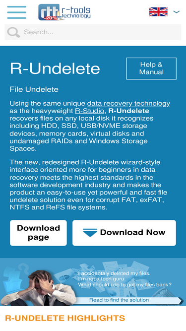 75%r-undelete is a powerful file undelete and file recovery software to find and restore lost files on a disk, usb, memory stick, sd card. free version for home users.