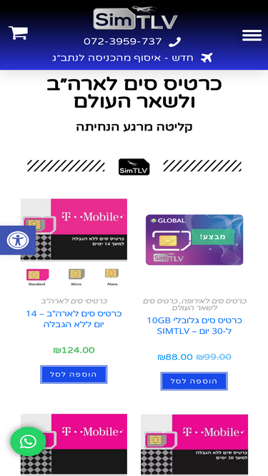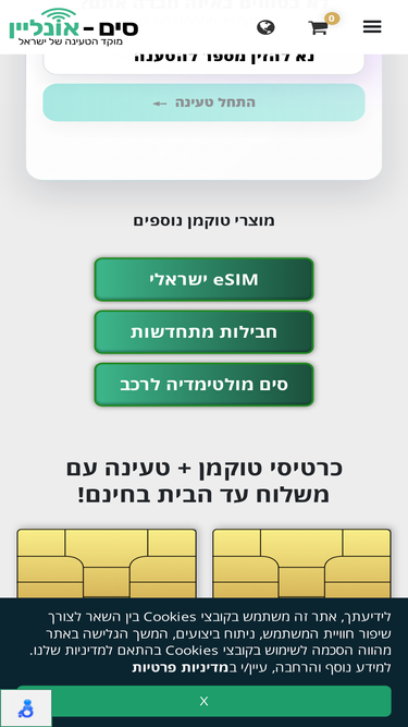 80%רכישת כרטיס SIM אונליין עם משלוח מהיר וחבילות תקשורת משתלמות בישראל ובעולם.
