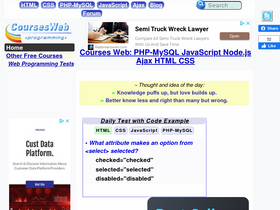 78%free web development/design tutorials. includes css, javascript, ajax, coldfusion, and html tutorials, code examples, layout help and references. complete list of html tags and css properties. also contains resources and background overview of xml, asp, xhtml, sql, sql server, databases and more.