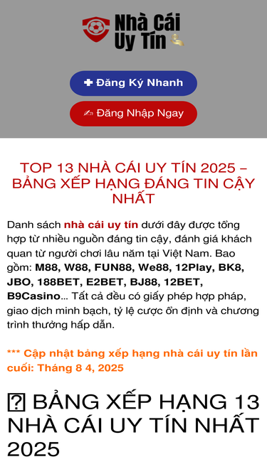 100%Danh sách top nhà cái uy tín nhất Việt Nam mới nhất năm 2025: M88, W88, Fun88, We88, BK8, JBO, 188BET, E2BET, BJ88, 12BET.