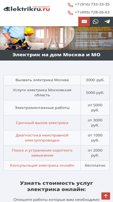 76%Цены на услуги электрика и электромонтажные работы в Москве и Московской области. Узнайте стоимость работ, и цены по электрике можно по номеру +79167333335