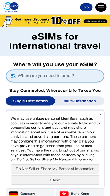 93%Privacy Policy - Buy an eSIM to use the Internet when traveling abroad without having to replace your sim card or seach for public internet. World eSIM offers the best eSIM.