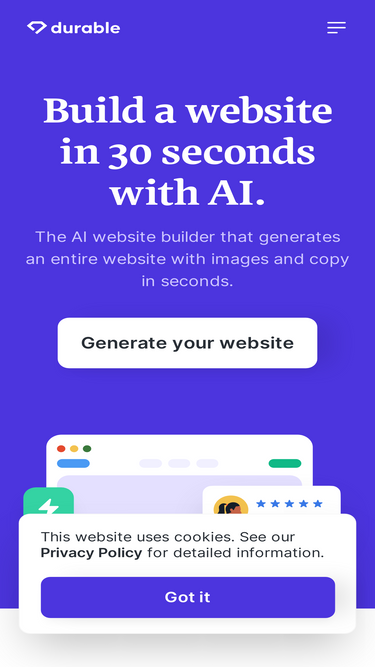 85%Sign up for your Durable account to access your business tools and manage your online presence.