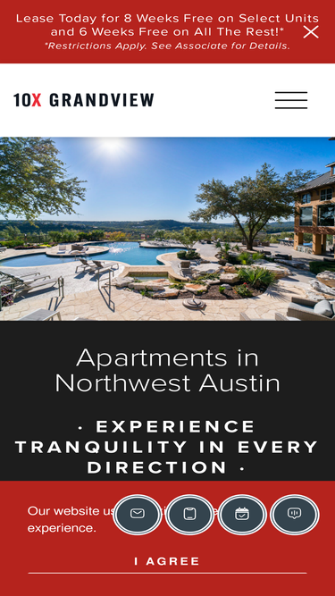 100%Looking for apartments in Northwest Austin? 10X Living Grandview offers pet-friendly apartments with stunning views and great amenities. Schedule a tour today!