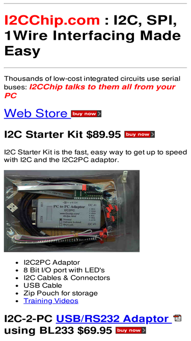 59%i2c/spi host adaptors, chips, and modules. pc to i2c/spi 1wire. usb and rs232 interface