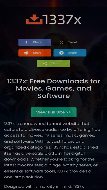 72%1337x.to: download music, movies, games, software and much more. 1337x.to is the galaxy's most resilient bittorrent site.