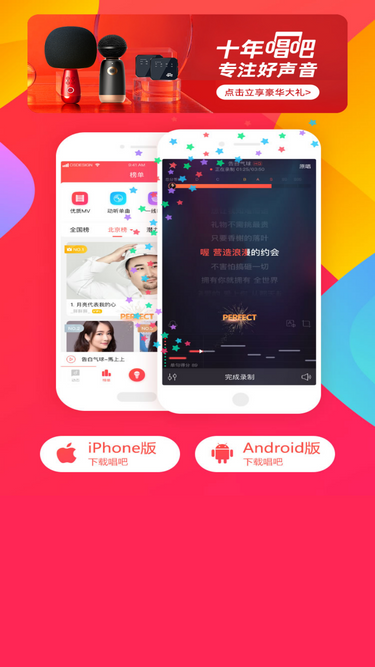 唱吧-时尚的手机ktv,听到歌声遇到你,唱吧将你的手机立刻变成ktv,并自带回音和混响效果能自动美化你的声音,还支持录歌上传至微博和qq空间。只要帮身边的mm们装上唱吧,定会让她们爱不释手!