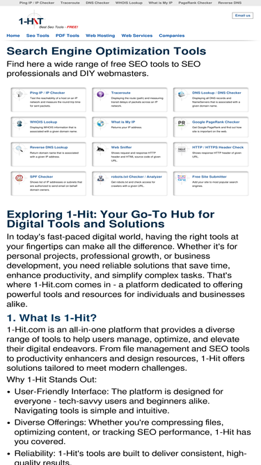 100%1-hit: providing comprehensive and superior seo and marketing services. popular seo tools, web hosting reviews. make your web site a success with 1-hit!