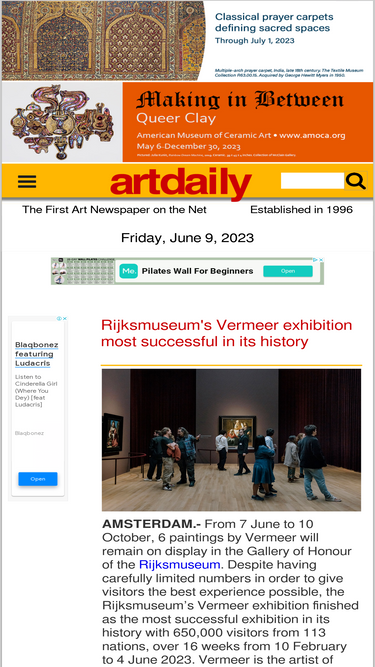 100%the first art newspaper on the net, art daily,art news,artdaily, daily art, art, art newspaper, museums, exhibits, artists, milestones, digital art, architecture, photography, photographers, special photos, special reports, featured stories, auctions, art fairs, anecdotes, art quiz, education, mythology, 360 images, 3d images, last week,mateo blanco makes film debut: caged bird opens oct. 2 in orlando, uk street artist banksy's famous balloon girl work to go on sale, from slavery to police abuse, new museum documents us history of racism, phillips announces highlights from its 20th century & contemporary art frieze week auctions, casey kaplan now representing ella walker, review: in 'never let go,' a solo performer's heart goes on
