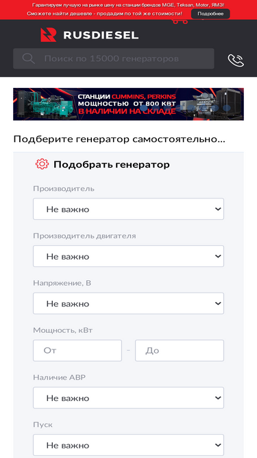 100%Сервис по подбору дизельных генераторов в полностью автоматическом режиме