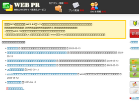 無料カテゴリー登録サービス[web pr]の公式サイトです。サーチエンジン登録、yahooカテゴリー登録などのような、カテゴリー登録サービスが主なコンテンツですが、その他にプレスリリース配信などの独自サービスがあります。もちろん全て無料でご利用頂くことが可能です。